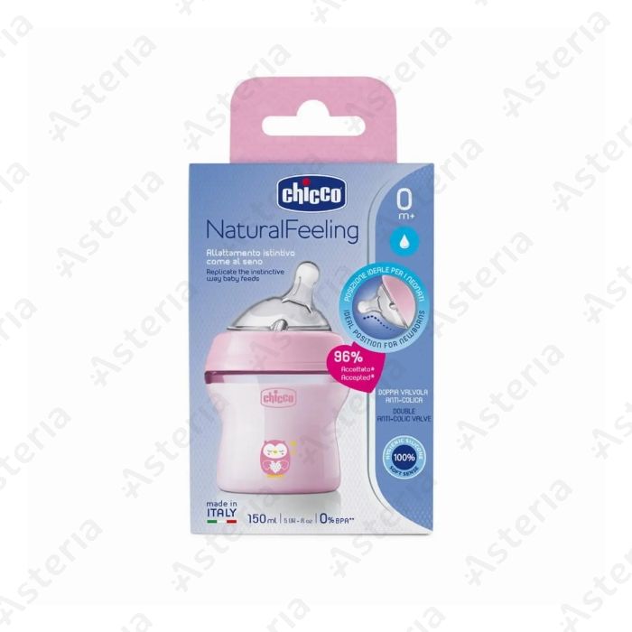 Бутылочка для кармления Чикко Натурал Филинг 0+ 150мл розовая