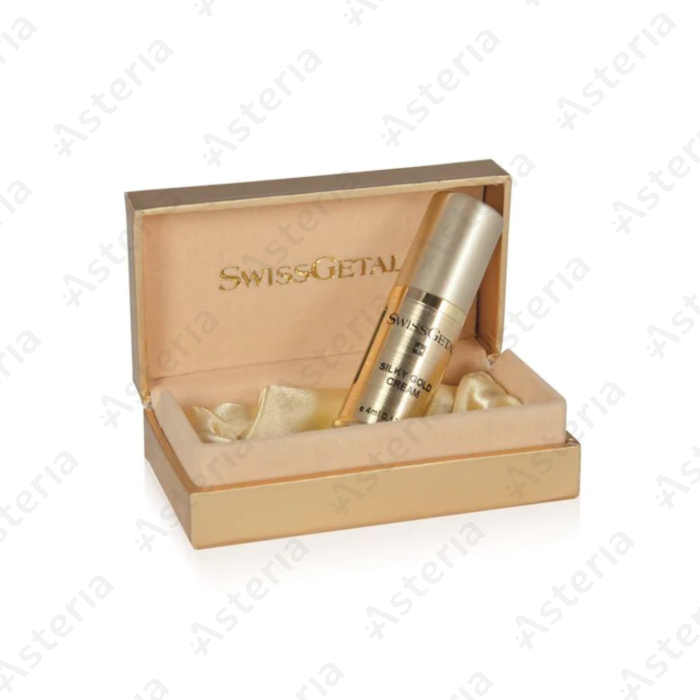 Эксклюзивный крем Silky Gold от SwissGetal — это роскошный антивозрастной эликсир. Золотая эссенция содержит хроно-биологические энергетики (активаторы), которые в сочетании с олиоминеральными катализаторами стимулируют клеточный обмен веществ, способствуют метаболизму клеток и, таким образом, противодействуют морщинам.